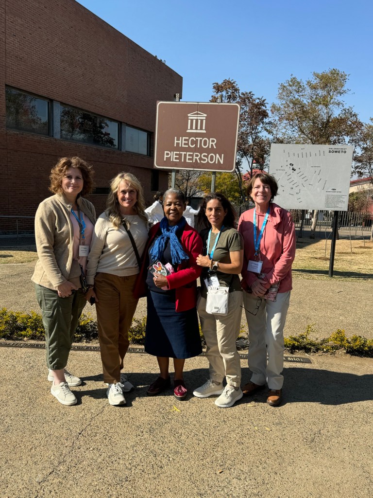 Where, when, and how it turned violent, nobody knows for certain. We listened to the first hand account of what happened that day in 1976. The story was told to us by Antoinette Sithole, seen here in the picture. Antoinette is Hector’s sister and the girl running beside Hector in the famous picture. Antoinette concluded her story with “forgiveness heals”.