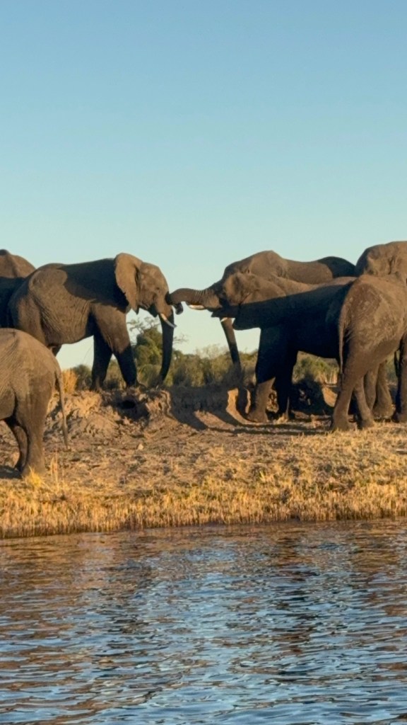 The Elephants🩶 — playing, bathing, caring for their calves, trumpeting. I could watch the elephants for hours, for days…they are fascinating. Their behaviors, their culture, their elegance while swimming, the way they bathe and protect themselves from the sun. They may be #1 of the Big 5 for me. In Chobe they are around every corner—every few feet in some cases!