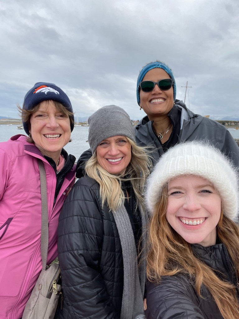 Laura, Me, Sian, and Hayley in Ushuaia before boarding our ship 🛳️ 🚀