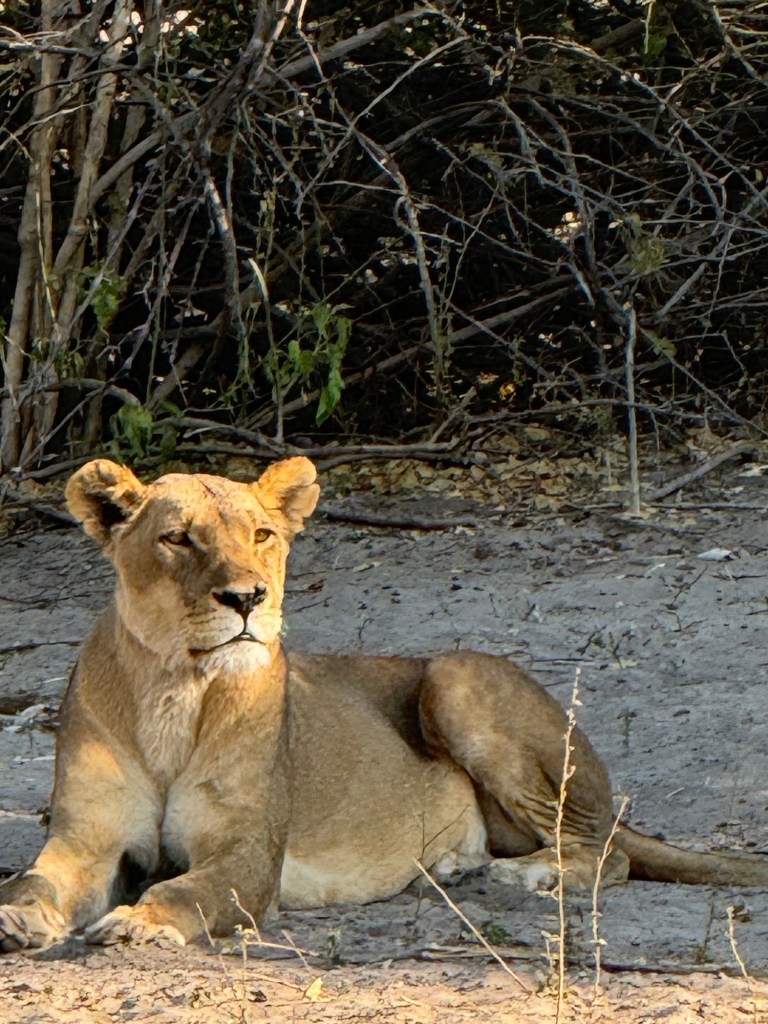 The hour+ trek allowed us to explore nature that is difficult to see when you’re in a vehicle. Things like—animal tracks, termites, nests, trees/bushes, lots of dung and what the animals eat! We heard the lions roaring so went to find them in the jeep.