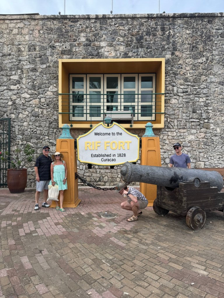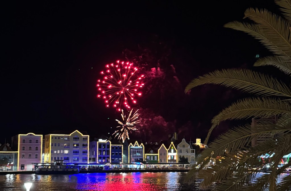 Willemstad was decorated for the holidayStanding on the Queen Emma Bridge with the Handelskade behind us—the harbor front street lined with 18th century candy-colored Dutch colonial architecture. This is a UNESCO World Heritage site. The bridge connects the two neighborhoods — Punda and Otrobanda.Dushi — in the island’s language of Papiamentu it means sweet, nice or good, treasure, sweetheart, darling, and even sexy. It is said that the word is like a “hug”!Dinner for some of us at one of our favorites, The GouveneurRif Fort – built in 1828 to protect the entrance of the St. Anna Bay and the outer part of the Otrabanda neighborhood. It’s now a mall/eatery. Celebrating the new year at Restaurant Playa FortiFireworks over the Handelskade!A rainy day at the Palapas at Blue Bay BeachA view from the pool at Villa HunduDal Toro Restaurant was divine!Until next time! Ayo!